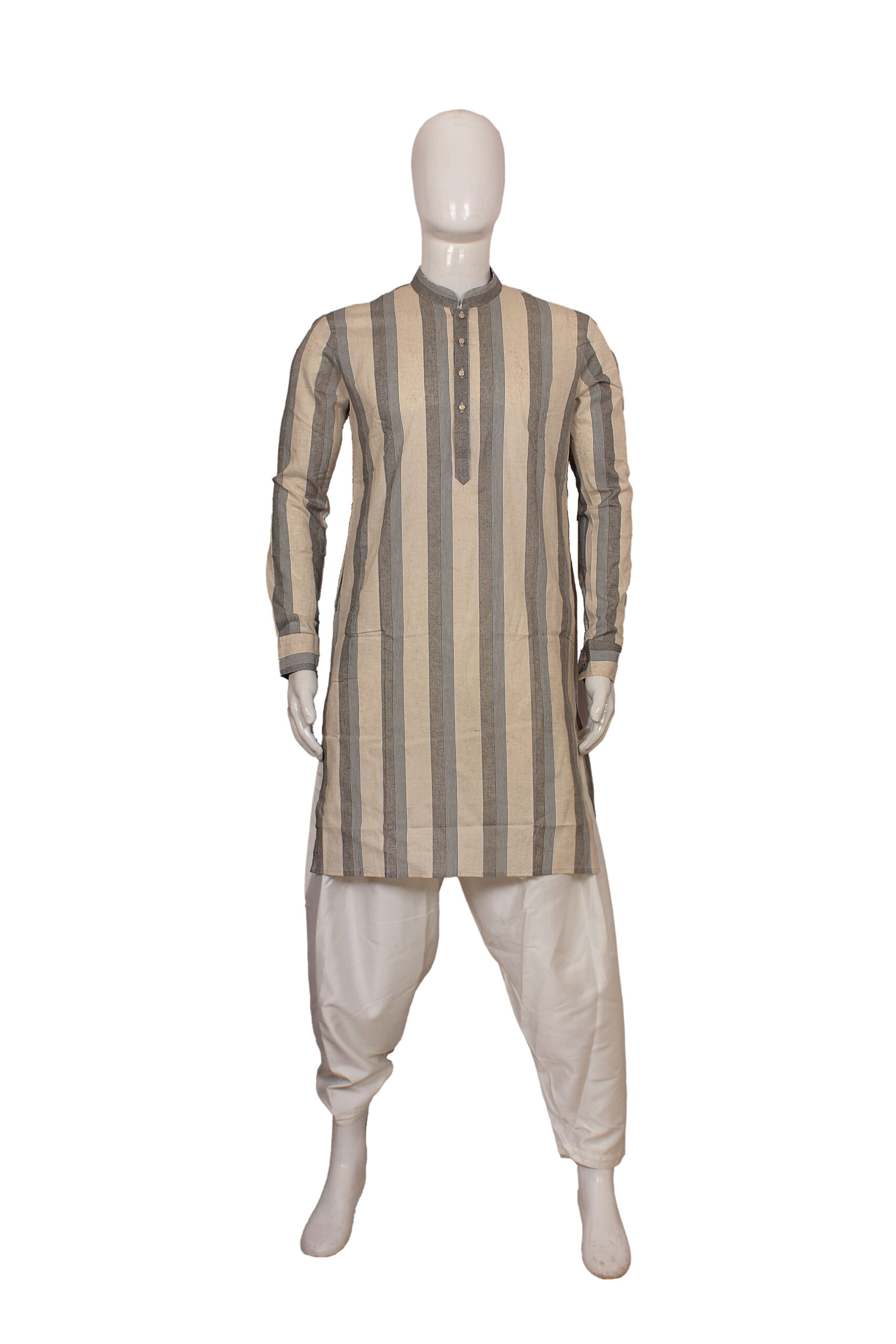 Vertical stripes run uniformly throughout the kurta, giving it a structured and tall appearance